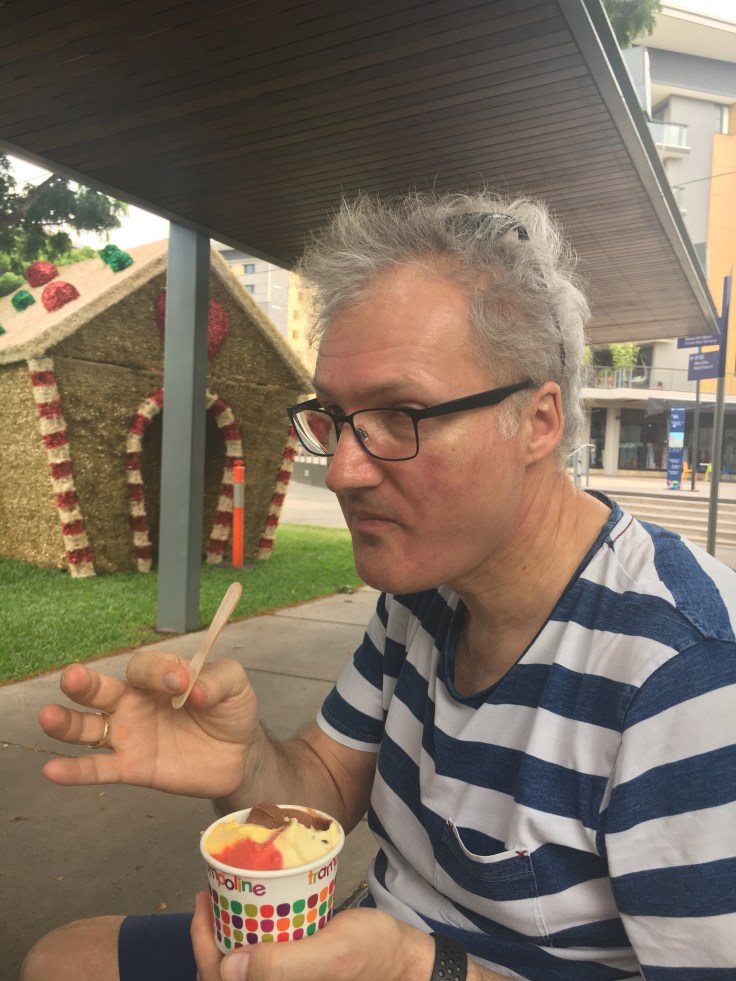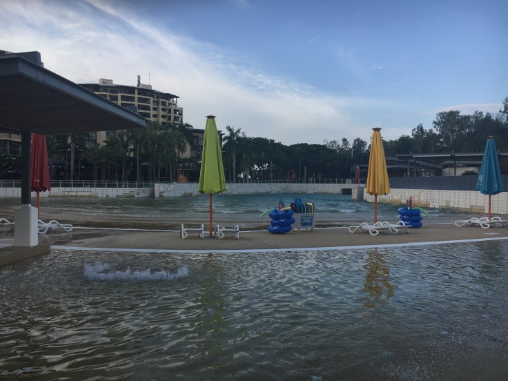 Wir sind zur Waterfront. Dort gibt es eine Lagune, in der man ohne Krokodile und ohne Seewespen baden kann – ohne Garantie.